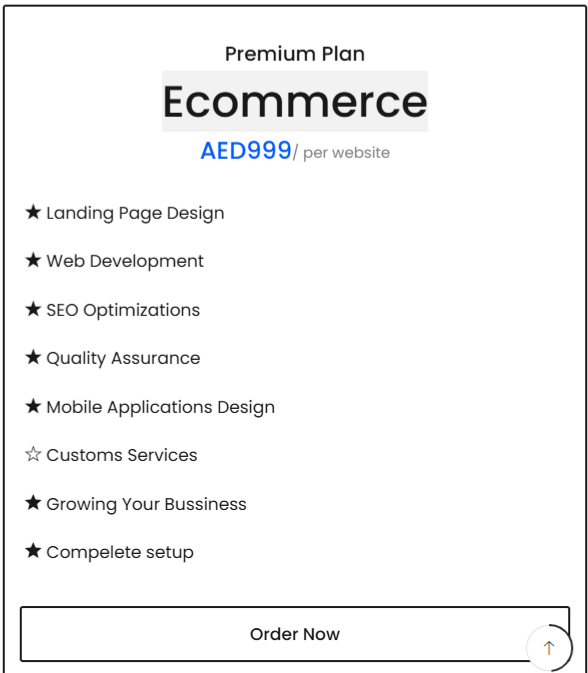 The Premium Ecommerce Plan is designed for entrepreneurs and businesses ready to take their online selling to the next level. At just AED 999, this all-in-one package is tailored to build and launch a powerful, conversion-focused ecommerce platform with mobile compatibility and full setup — so you can focus on growth while we handle the tech.