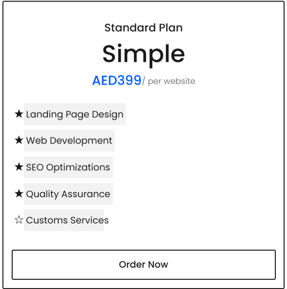 Our Standard Plan – Simple is a cost-effective, high-value package crafted for startups, freelancers, and small businesses that need a clean and professional online presence without overspending. At just AED 399, this plan provides all the essential components required to build a strong digital footprint and help you stand out in the competitive online world.